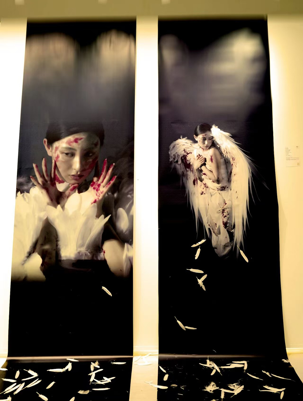 Artist / 作者 YUN WEN 温蕴 Title / 作品名 Bound Breath《缚翼之息》 Photography / 摄影师 JP Wong 黄洁鹏 Styling guidance / 造型指导 Yun Wen 温蕴 Model / 模特 Ge Tian 田歌 Retoucher / 修图师 M Lee, Yun Wen 李明、温蕴 Artwork Description / 作品简介 Titled "Bound Breath," this photographic series constructs a parable of inverted existence through the visual paradox of humans adorned with wounded wings.