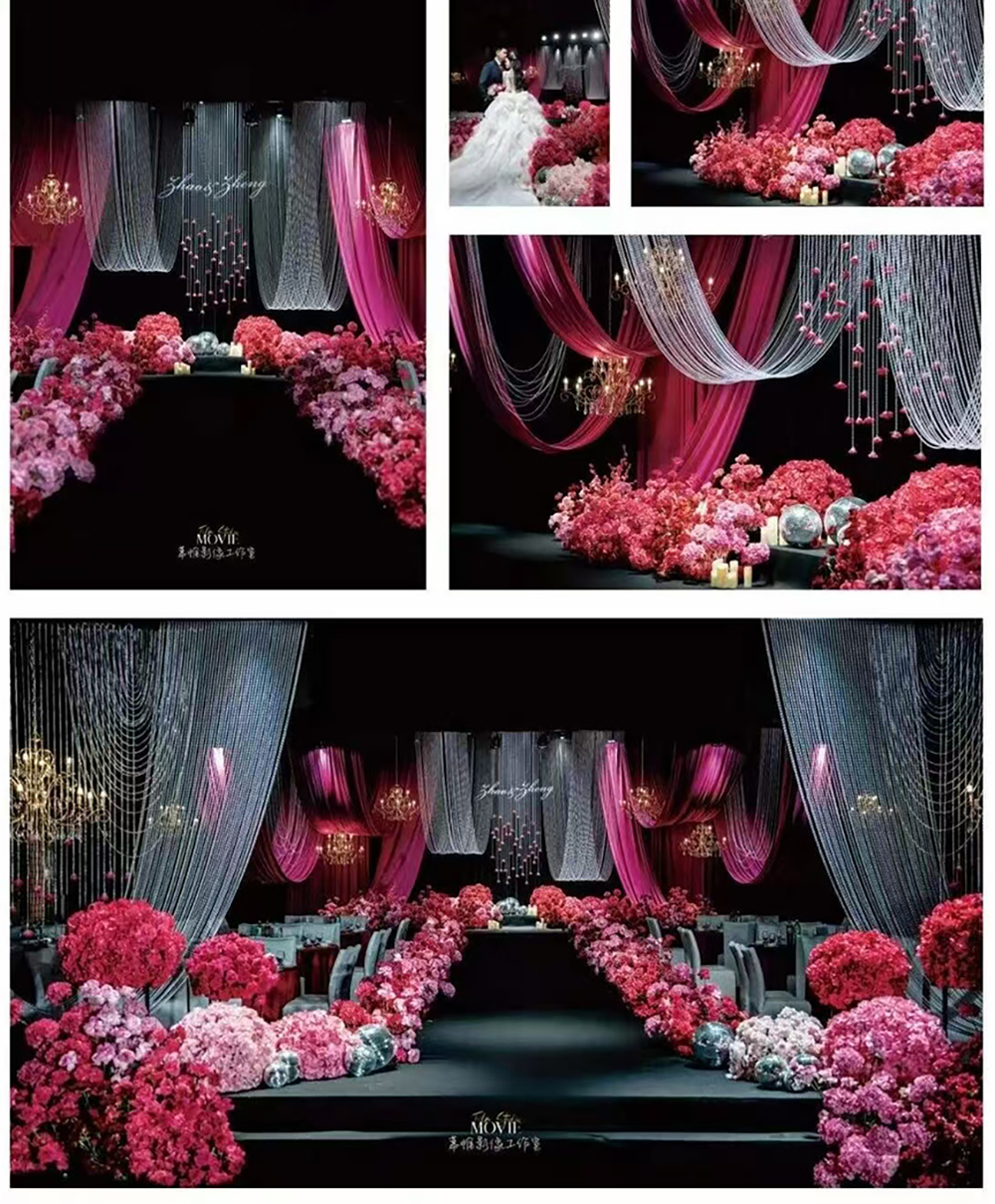 Artist / 作者 Chen Qinyao 陈芹瑶 Title / 作品名 Weaving Realm 《织境》 Materials / Medium / 材料 decorative drapes,crystal decorations,artificial flower arrangements ,candle 布幔,水晶,仿真花,蜡烛 Dimensions / Size / 尺寸 16 m× 5 m × 22m Artwork Description / 作品简介 This work is a practical outcome of the "three-dimensional synergy framework for immersive wedding spaces": taking decorative drapes (spatial construction) as the carrier, using purple-toned rose red and crystal veils (narrative symbols) to convey the emotional core of "restrained passion," and realizing closed-loop synergy of space, narrative, and emotion through detailed coordination of materials and colors, interpreting the "passionate yet eternal" wedding experience.