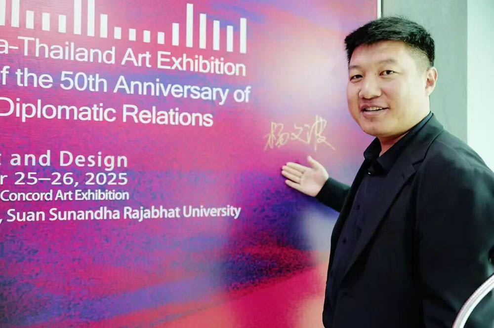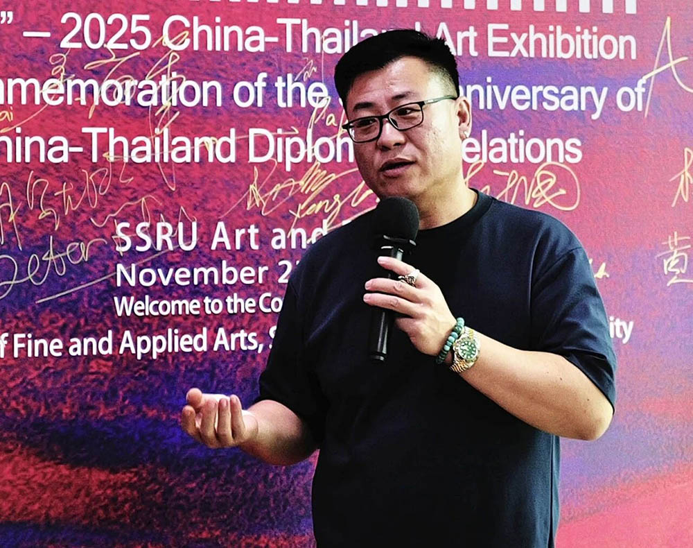 On November 25, 2025, in celebration of the 50th anniversary of the establishment of diplomatic relations between China and Thailand, the 2025 Second China–Thailand “CONCORD” International Art Exhibition officially opened at the Faculty of Fine and Applied Arts, Suan Sunandha Rajabhat University in Bangkok. The exhibition is hosted by the Faculty of Fine and Applied Arts of Suan Sunandha Rajabhat University, and jointly organized by the University’s International Alumni Association and the China–Thailand Center for Cultural and Artistic Exchange, with generous support from the Tsinghua University Alumni Association of Hainan and the Tsinghua University Alumni Association of Thailand. The exhibition brings together a wide range of artistic forms, including sculpture, lacquer painting, watercolor, design, and photography. Artists from diverse backgrounds employ their unique visual languages to present dialogue, exchange, innovation, and mutual inspiration within a contemporary context. The works embody the spiritual essence of cultural traditions while also revealing new aesthetic extensions and creative reflections through cross-cultural expression. The exhibition aims to enhance cultural exchange between China and Thailand through diverse visual languages and artistic narratives, while fostering interaction and collaboration among young artists and scholars from both countries. By commemorating this historically significant year through art, the event further promotes the integrated development of Sino–Thai cultural and artistic relations in the new era. 2025年11月25日,值中泰建交50周年之际,“2025第二届中泰‘CONCORD’国际艺术作品展”在泰国曼谷宣素那他皇家大学艺术学院隆重开幕。 本次展览由宣素那他皇家大学艺术学院主办,宣素那他皇家大学艺术学院留学生校友会与中泰文化艺术交流中心承办,并得到泰国清华大学校友会、清华大学海南校友会及黑龙江省工艺美术与非遗协会的大力支持。 展览汇集了雕塑、漆画、水彩、设计、摄影等多种艺术形式,来自不同背景的创作者以独特的艺术语言,呈现出在当代语境中的对话、交流,创新与互鉴。作品既体现出文化传统的精神性,也在跨文化表达中展现出新的审美延展与创作思考。 本届展览旨在通过多元的视觉表达与艺术叙事,加强中泰文化艺术领域的人文交流,促进两国青年艺术家与学者之间的互动与合作。活动以艺术的方式纪念这一具有历史意义的重要时刻,进一步推动中泰文化艺术在新时代背景下的融合与发展。