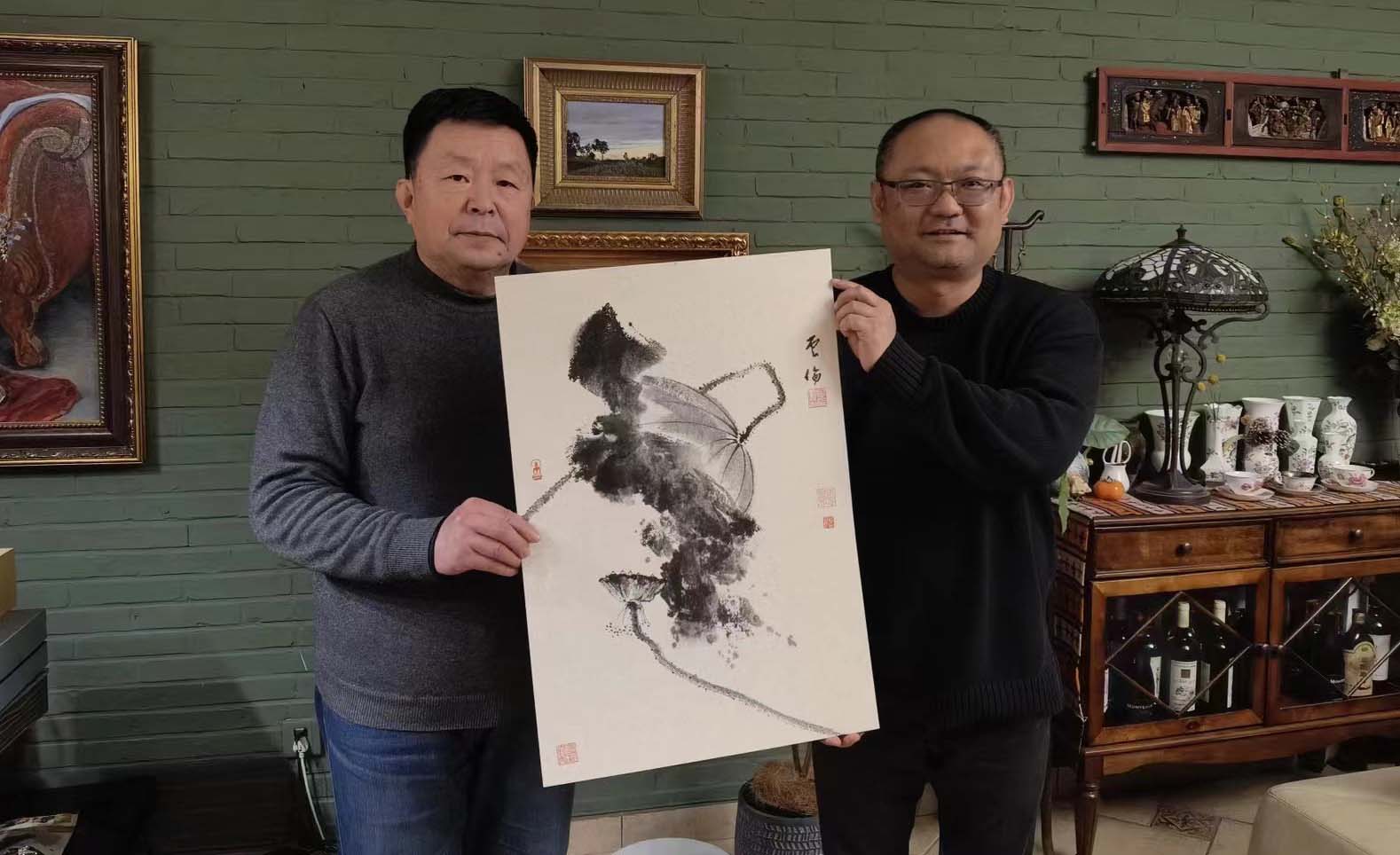 吴尚华与清华大学美术学院教授周剑石在漆画作品前合影